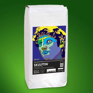 Die einzigartige Rezeptur von SKULPTIN ® wurde von Sven Backstein entwickelt und so optimiert, dass die feinkörnige Masse nach dem Anrühren und Gießen schnell erstarrt, danach sehr langsam härter wird und nach mehreren Wochen schließlich eine hohe Festigkeit erreicht. Dadurch ist es möglich, dass sich das Werkstück bis zu zwei Tage lang mühelos mit leichten Kratzwerkzeugen bearbeiten lässt.